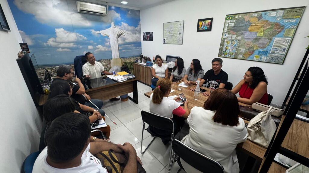 Na manhã desta segunda-feira (11), o presidente da Câmara Municipal de Gravatá, Léo do Ar (PP), recebeu em seu gabinete representantes da diretoria do Sindicato dos Professores de Gravatá (SIPROG). O encontro, realizado na Casa Elias Torres, teve a participação das vereadoras Ninha Professora (PSB) e Maria Vilar (REPUBLICANOS), além de outros parlamentares que se encontravam na sede do Legislativo.